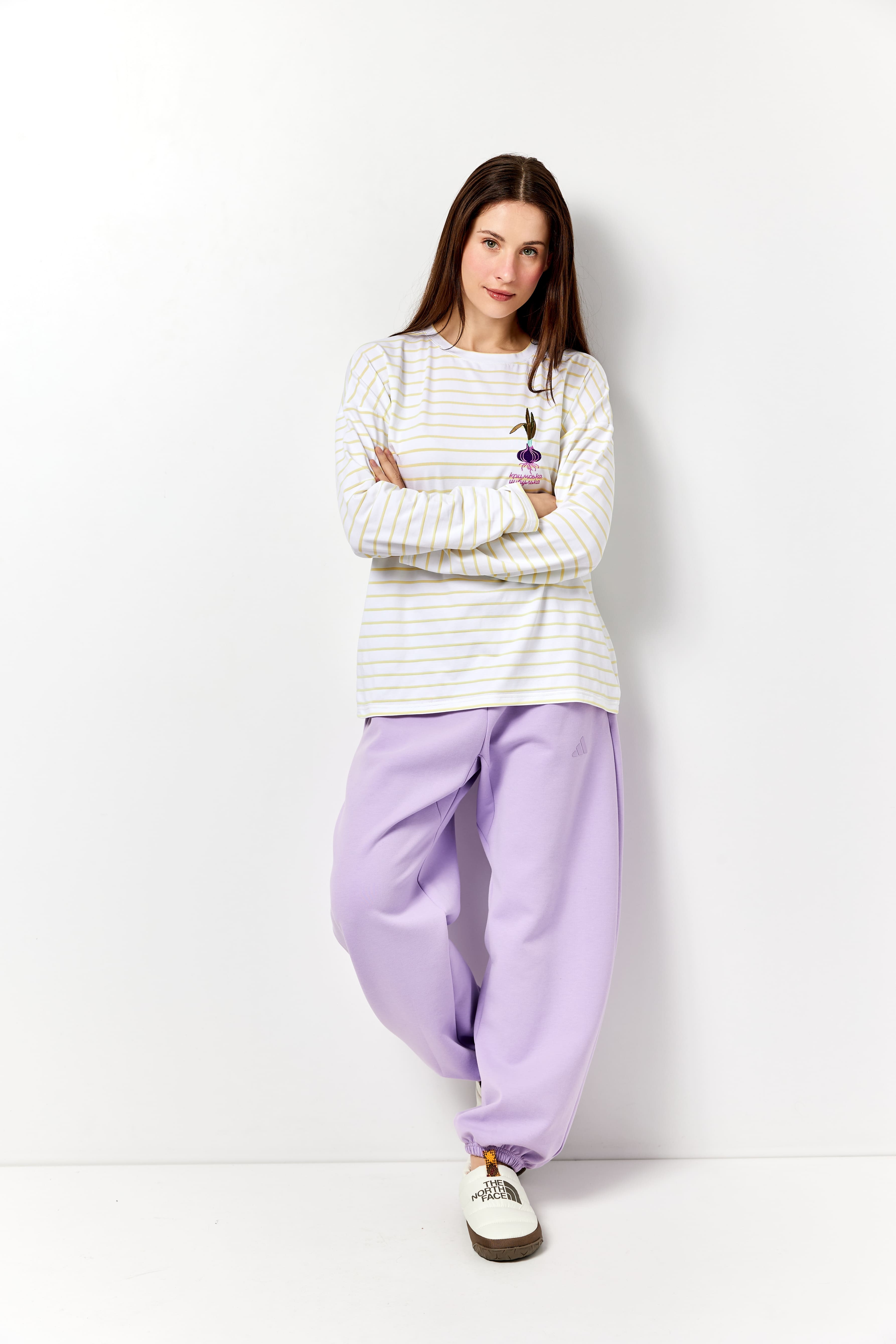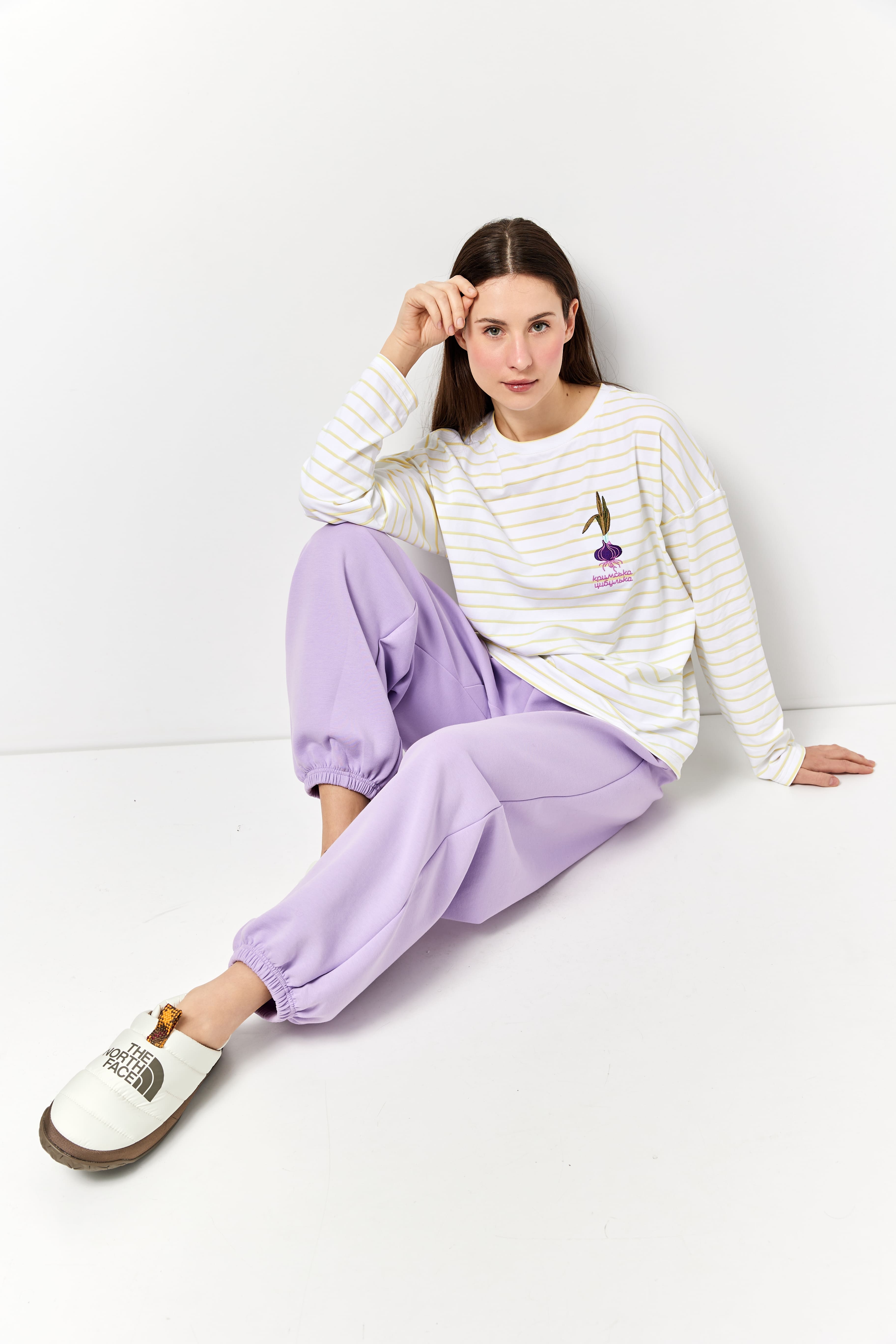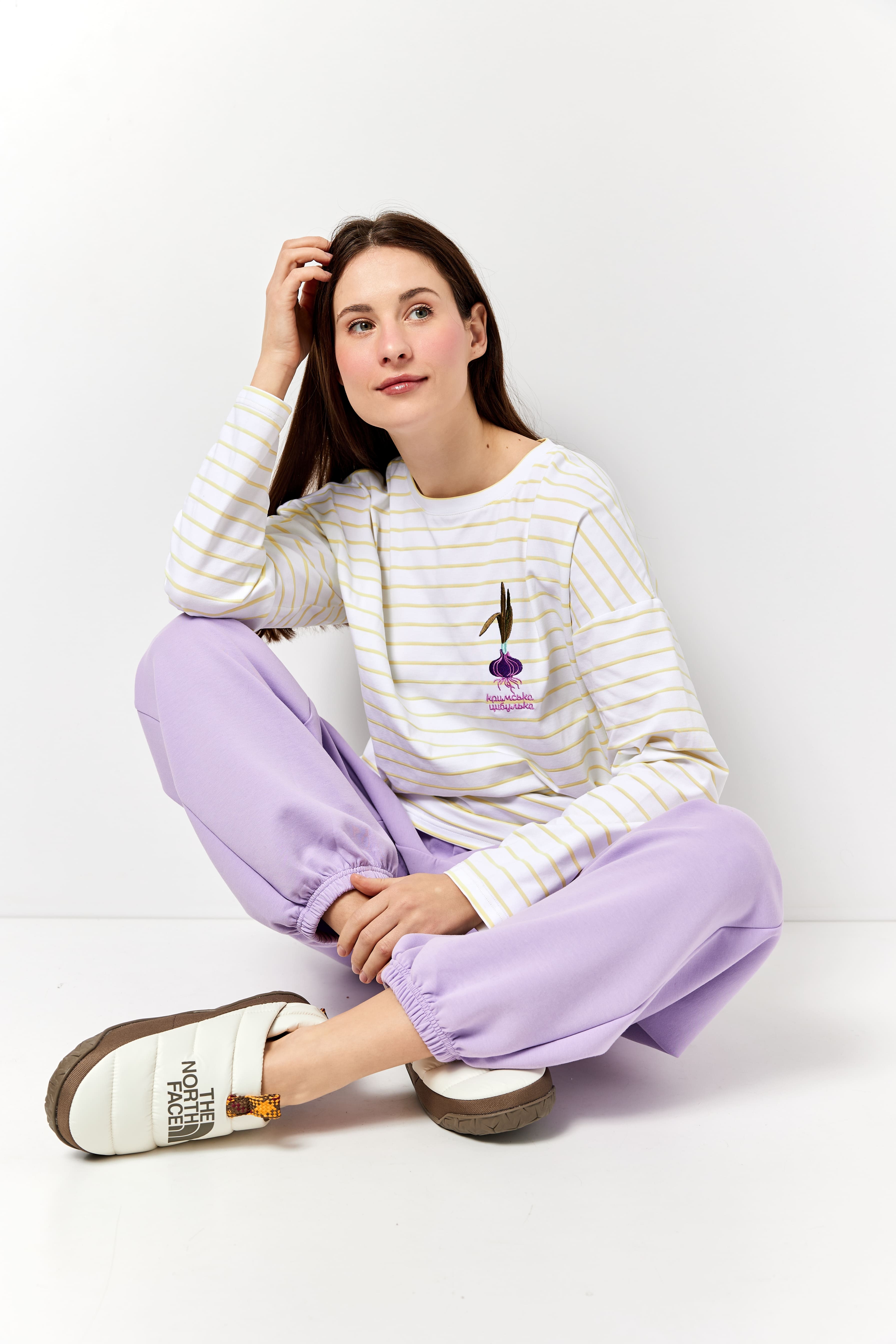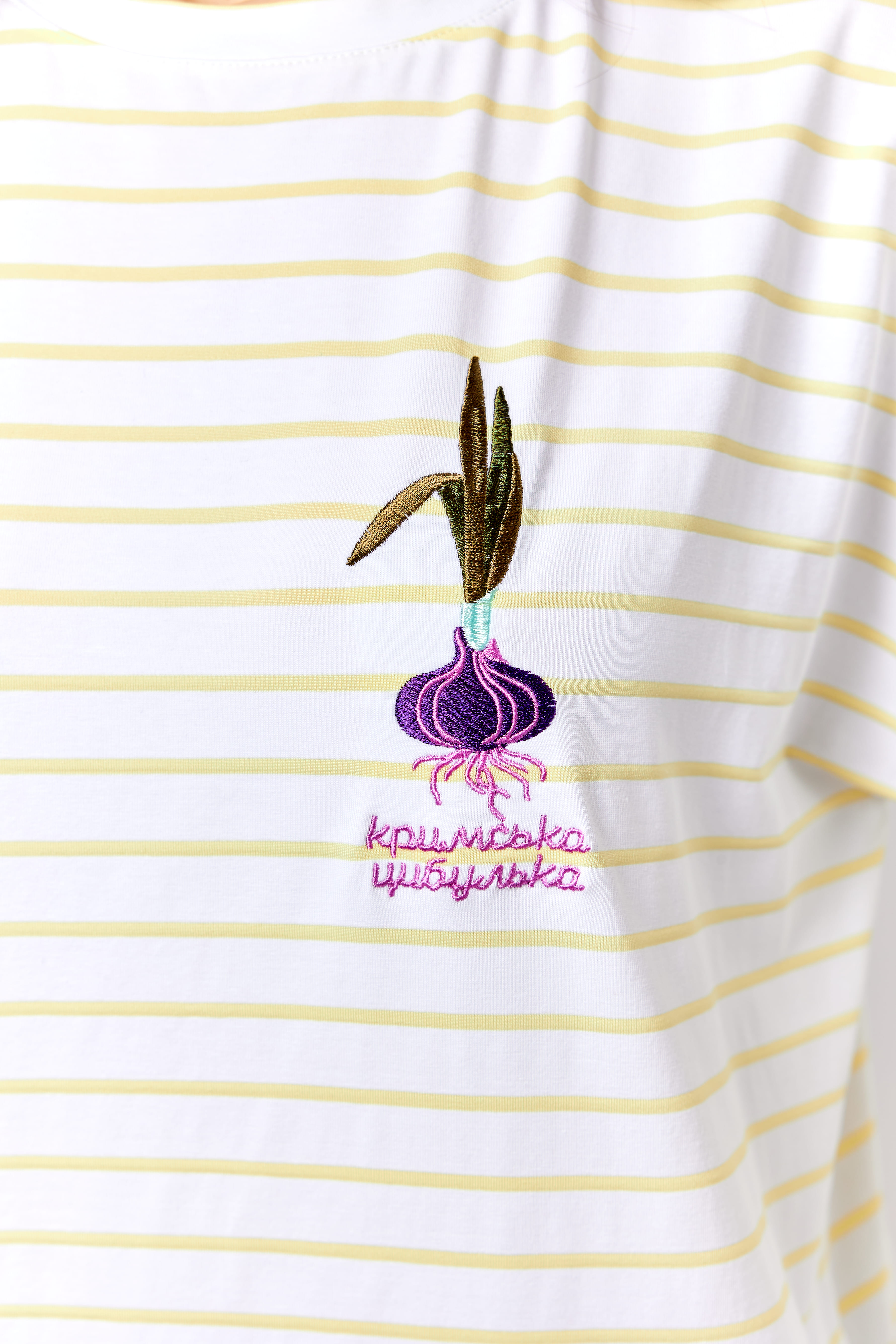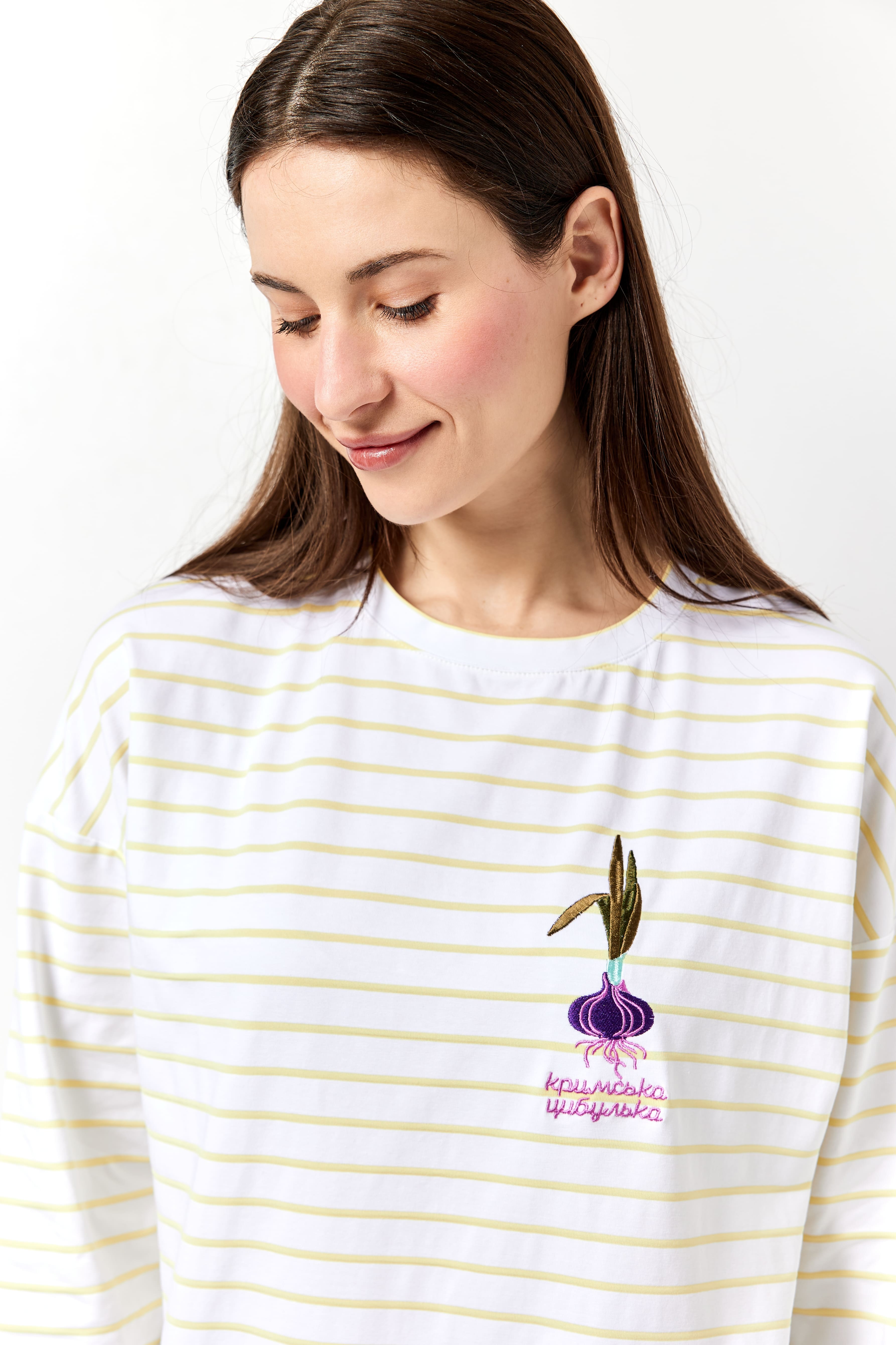 Лонгслів з вишивкою "Кримська цибулька" смугастий