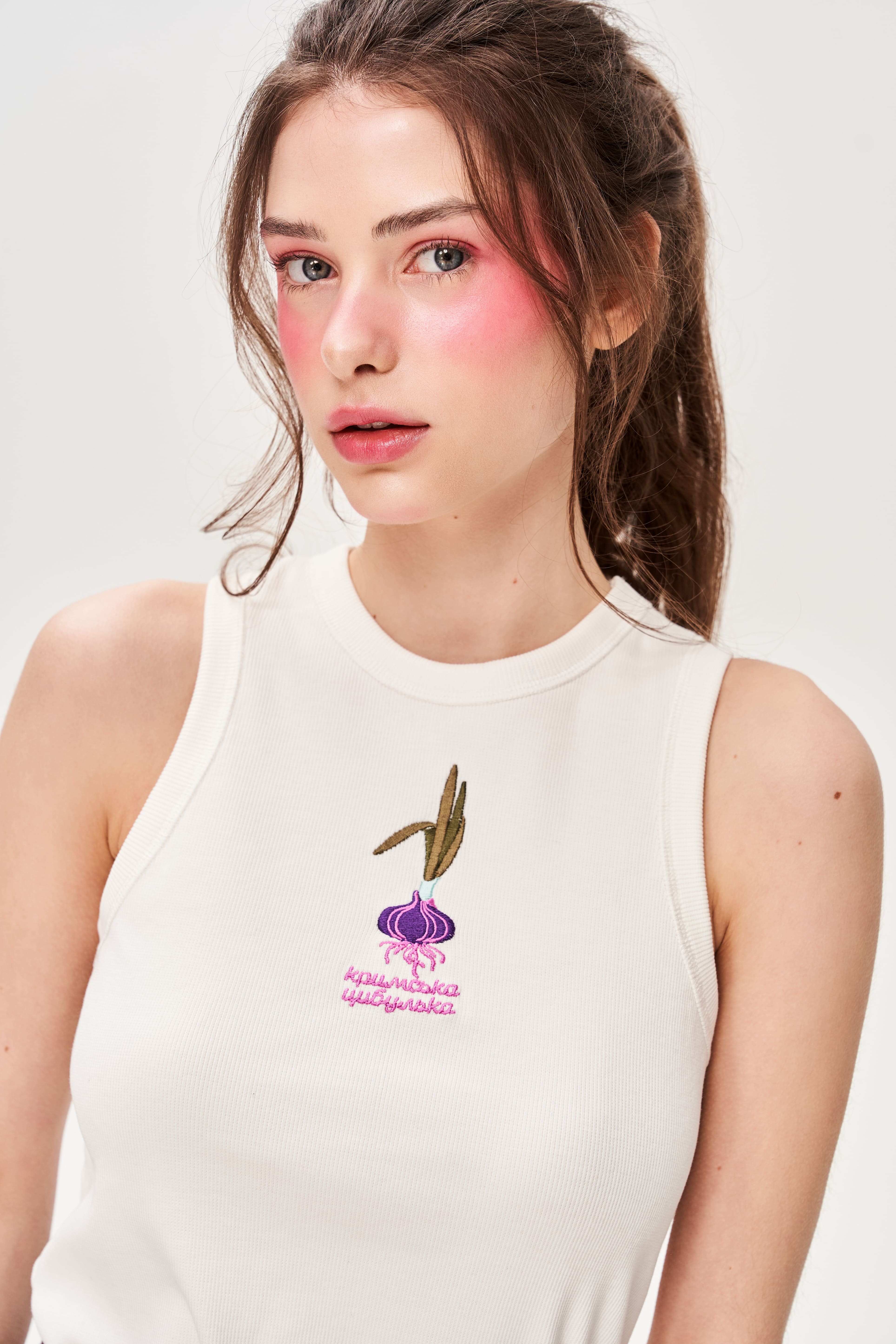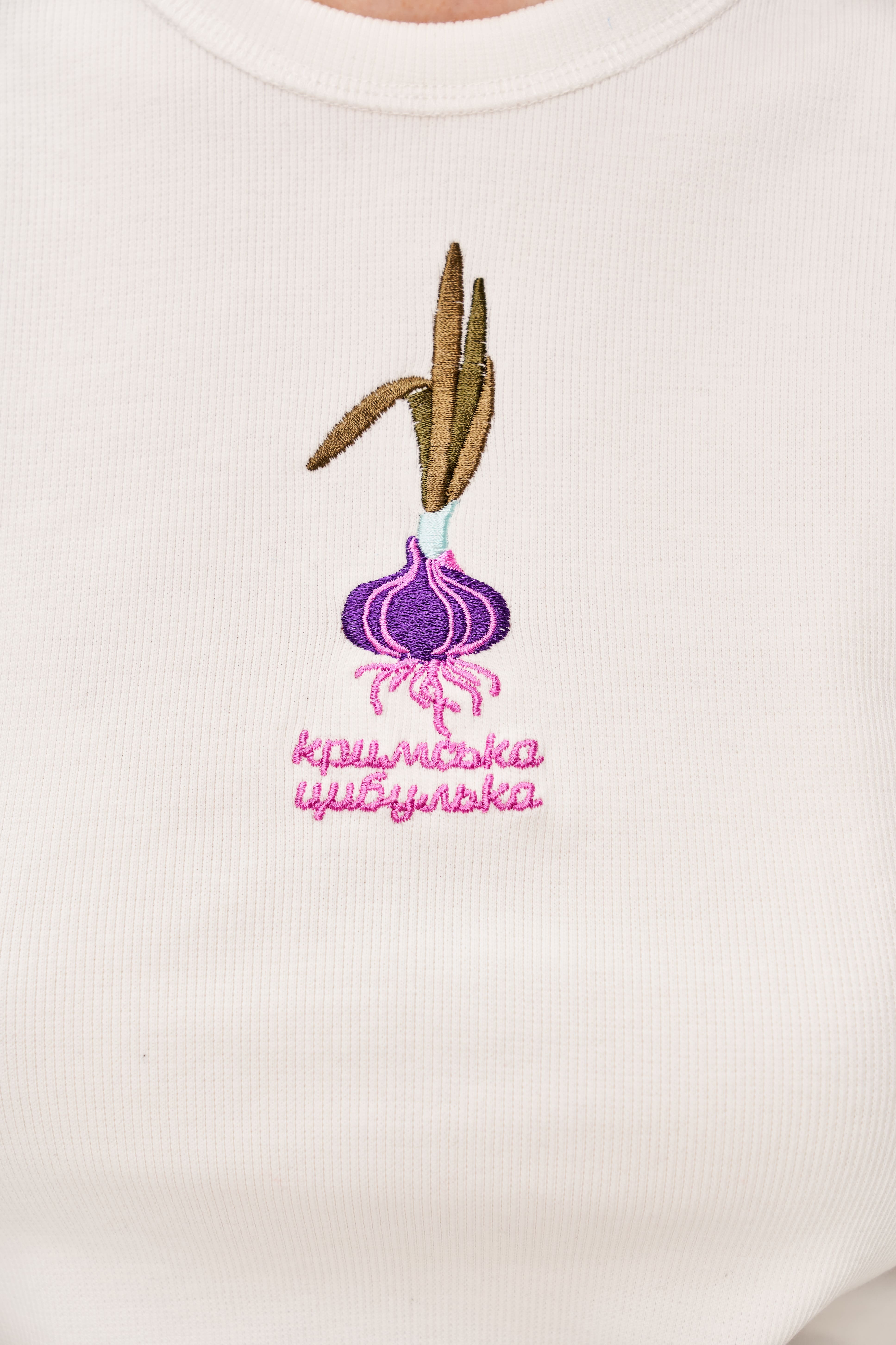 Майка з вишивкою "Кримська цибулька" молочна