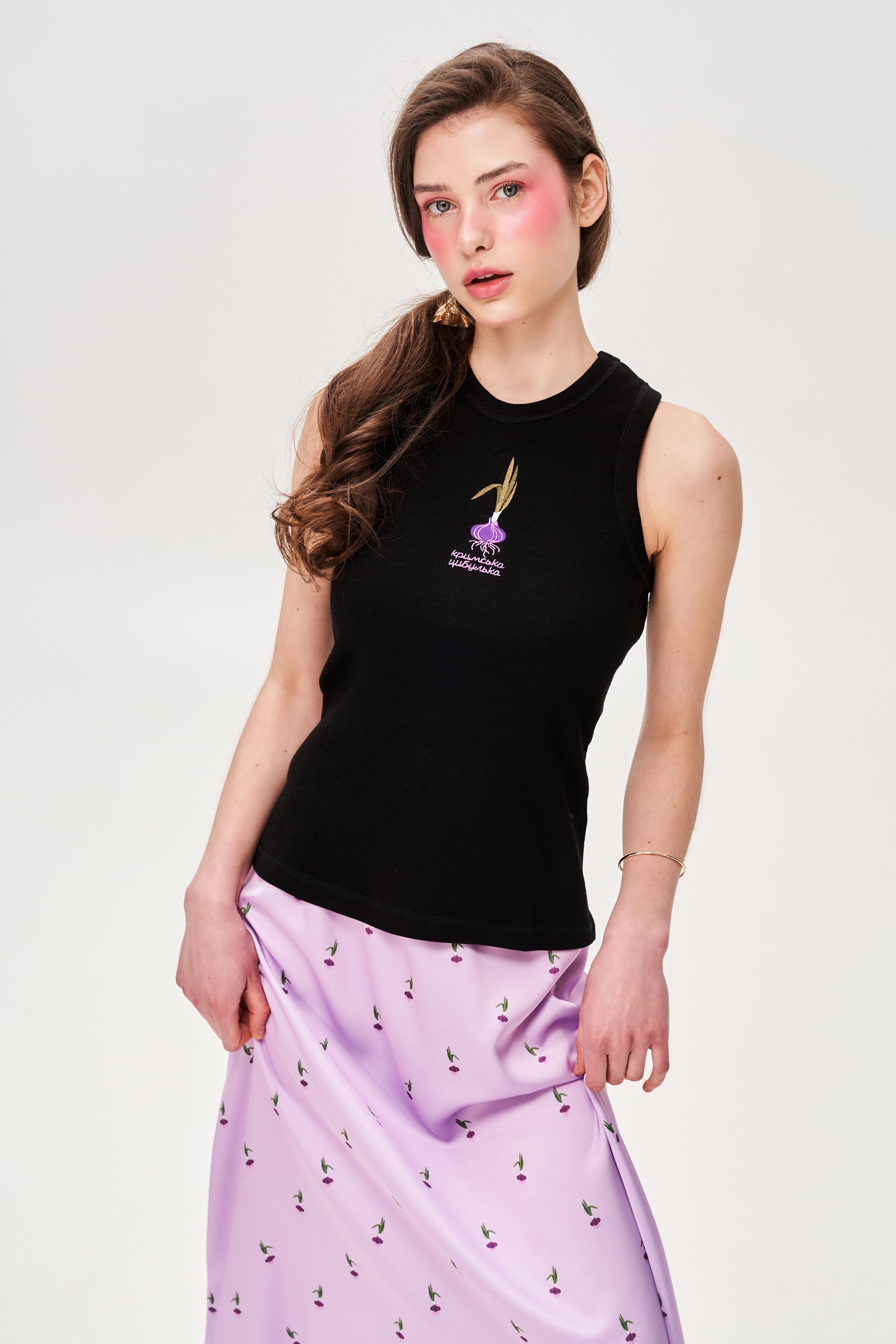 Майка з вишивкою "Кримська цибулька" чорна