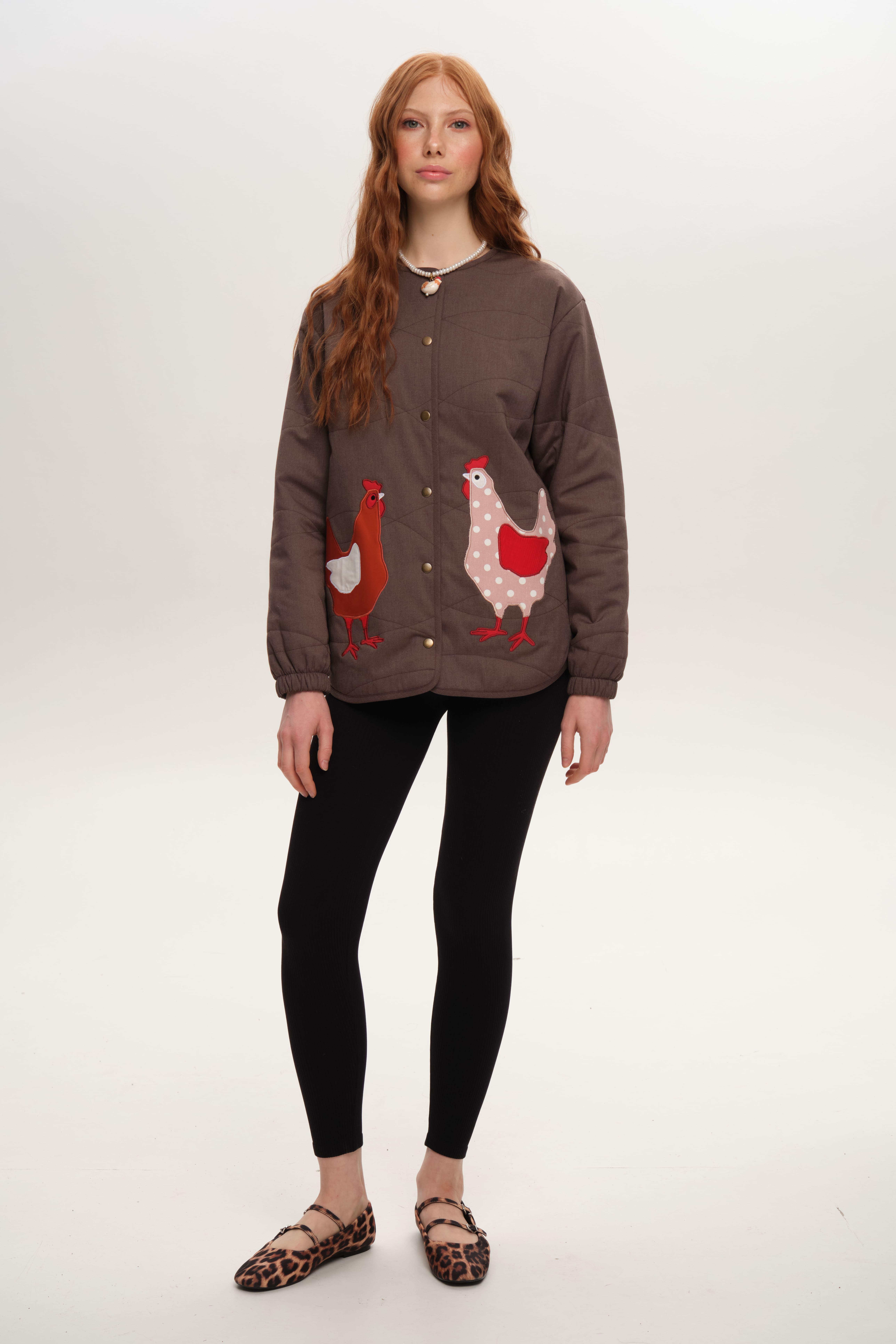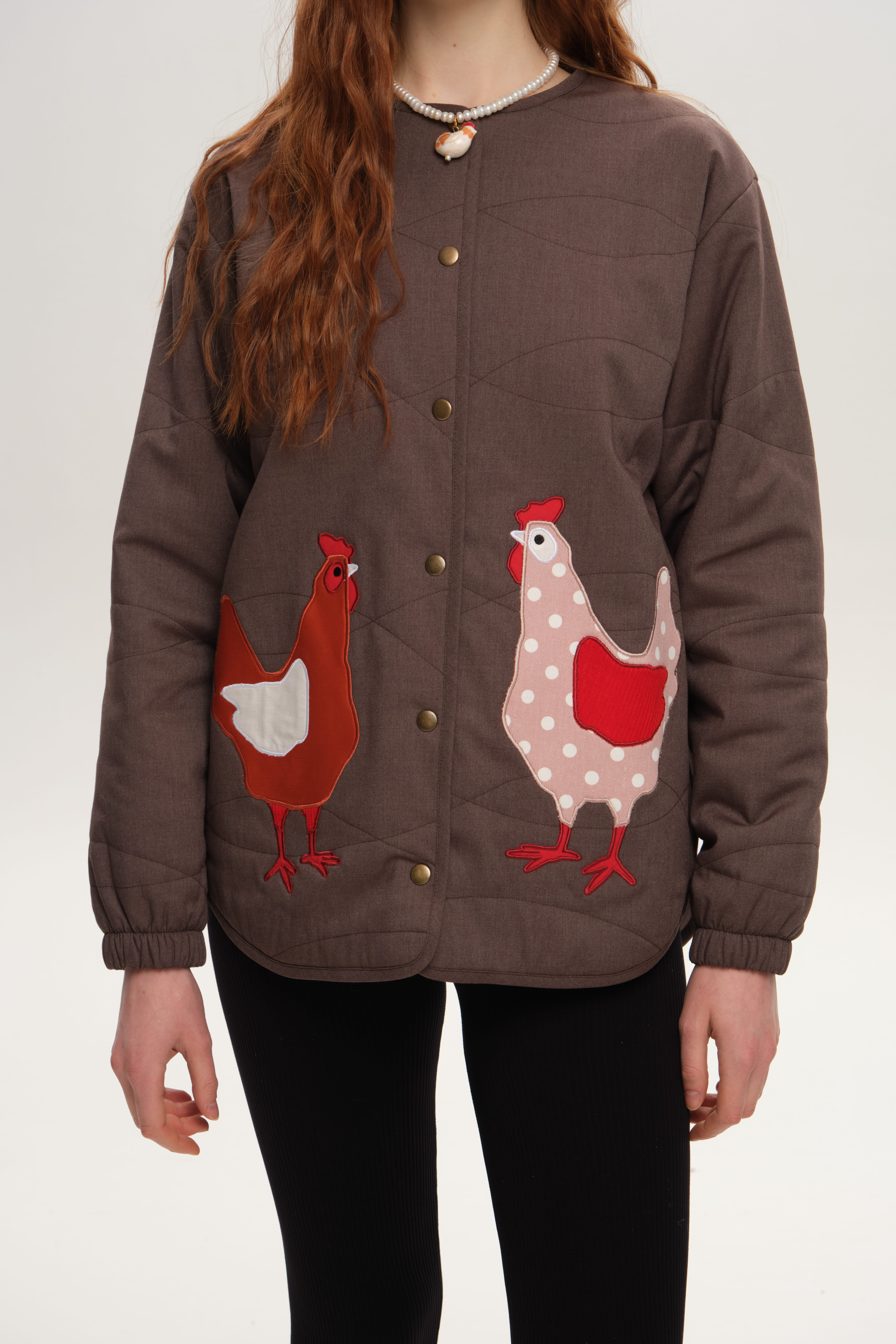 Основна тканина - шовк 10%, віскоза 40%, бавовна 30%, поліамід 20%. Всередині підкладка з натуральної бавовни та утеплювач слімтекс.